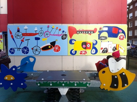 Een Kunstproject met kleuters van de Tijl Uilenspiegel in Bos en Lommer, waarbij de onderbouw in een maand tijd met de Kunstenaar panelen hebben beschilderd. De panelen werden bevestigd aan de buitenkant van het schoolplein. De compositie en kleur is bepaald door de kunstenaar.